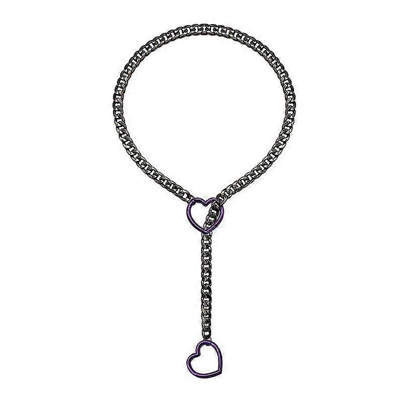 Stainless Steel Heart O-Ring Cuban Link Slip Chain Y-Necklace Long Trendy Punk Rock for Women.