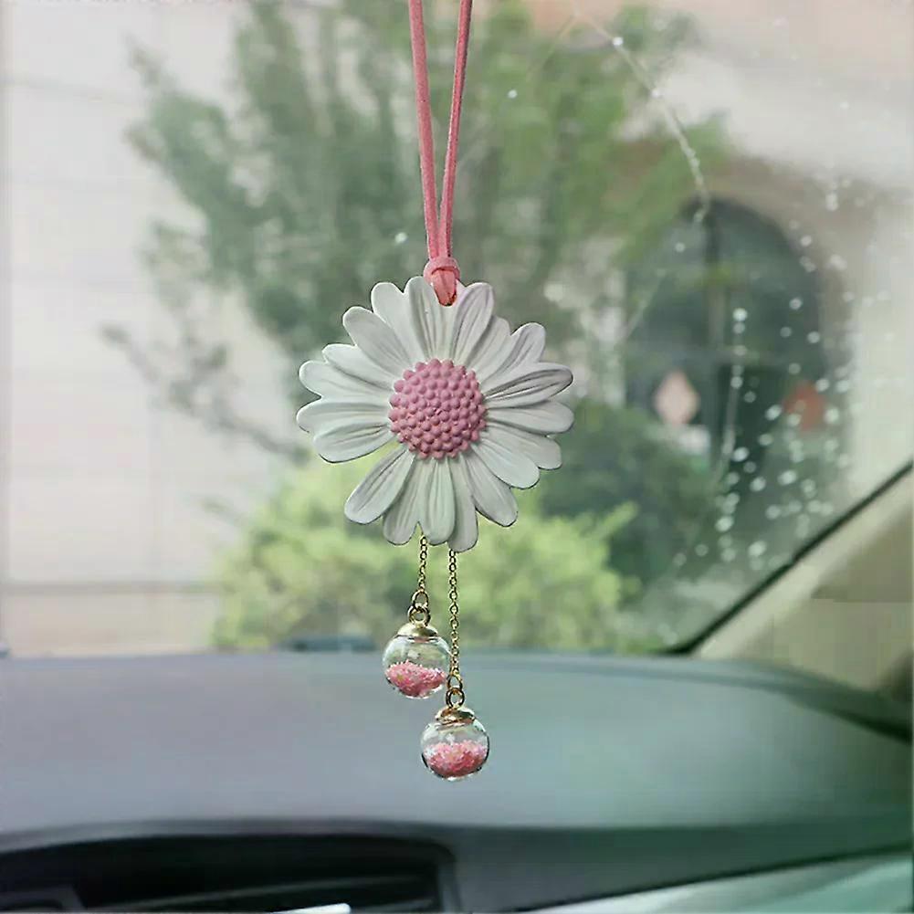 New Cute Daisy Crystal Car Ornament - Handcrafted Rearview Mirror Hanging with Sparkling Crystals, Perfect Interior Decoration
