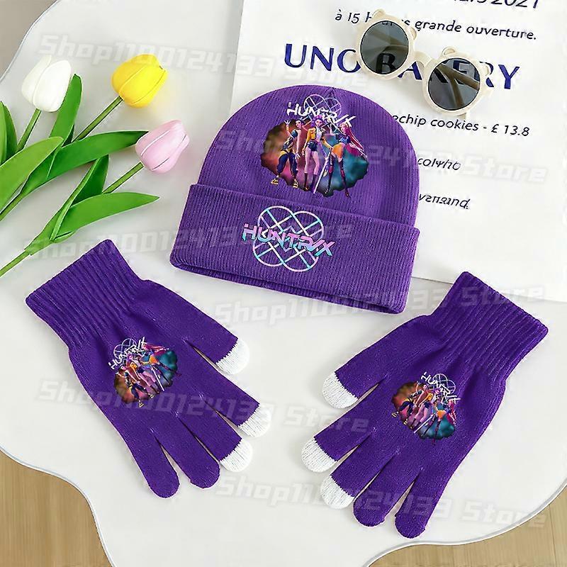 Demone Hunter Woman Knitted Hat Glove Cute Anime Print Kids Girl Y2K Kawaii Outdoor Warm Knit Cap Glove 2pcs Set Game Party Gift