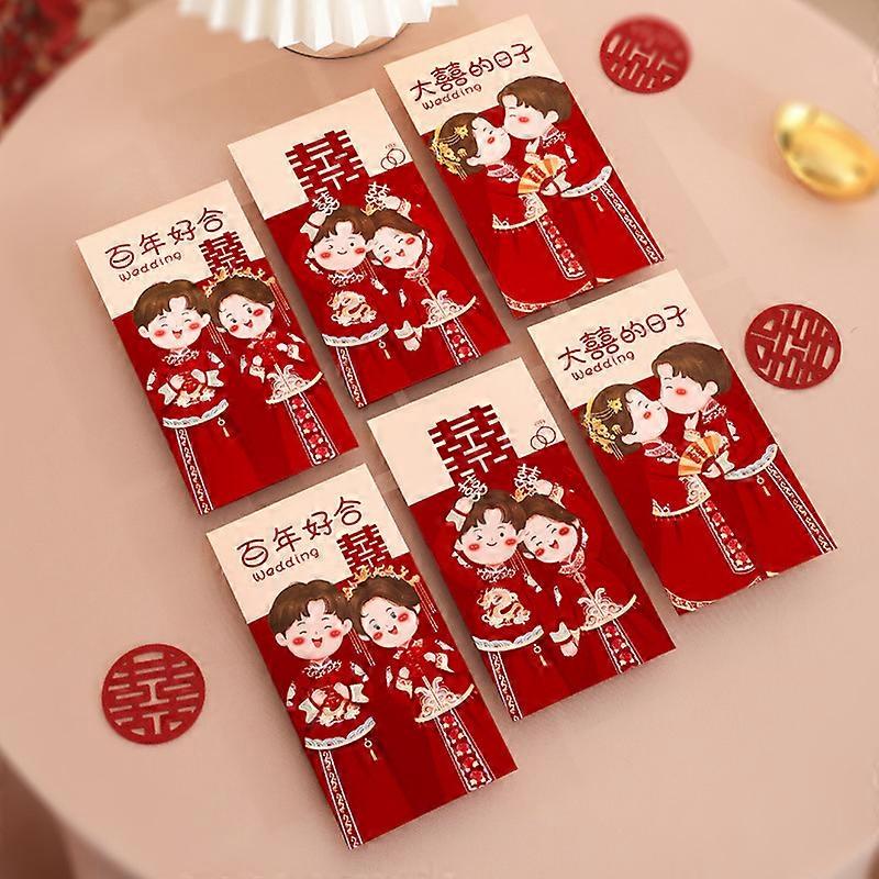 6Pcs Traditional Chinese Wedding Red Envelope Lucky Money Packets Blessing Red Packet Hongbao Wedding Gifts