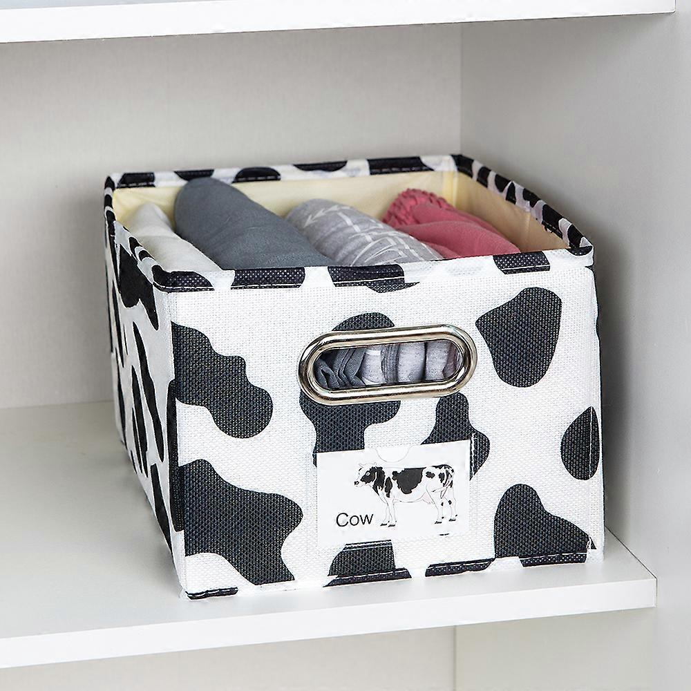 1PC Cotton and linen uncovered drawer style storage box, black and white cow printed clothing storage box