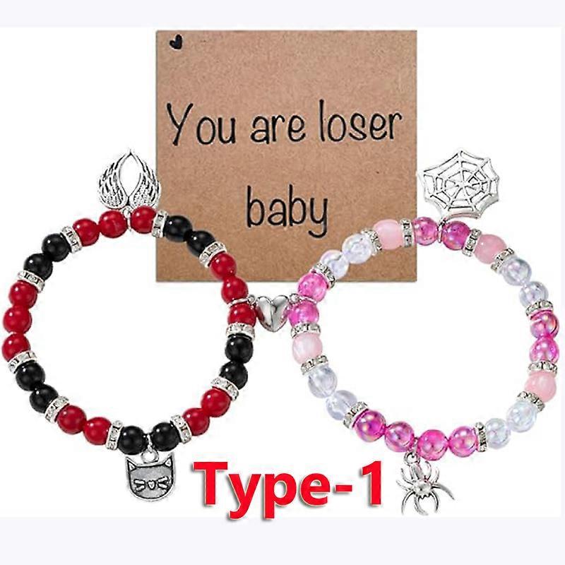 Hazbin Angle Bracelets Anime Merch Cosplay Heart Matching Bracelets Gifts for Women Men with You are Loser Baby Card