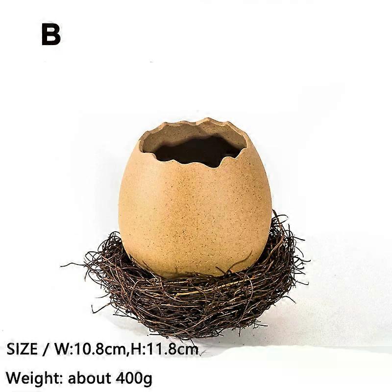 Creative Dessert Bowl Noodle Bowl Hydroponic Egg Shell Ostrich Vase Cute With Nest Home Decoration Modern Simple Ceramic Craft