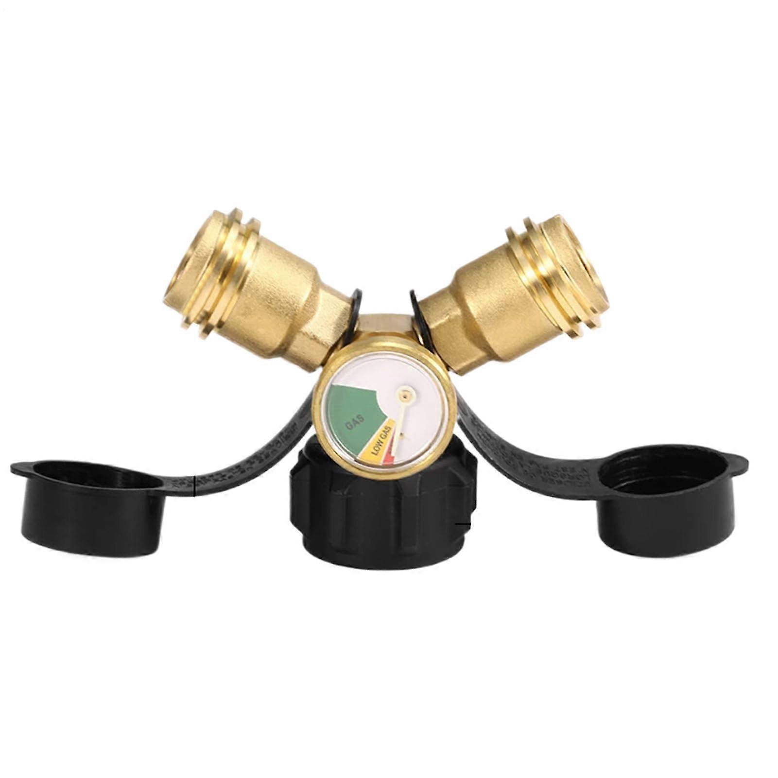 Propane Tank Splitter with Pressure Gauge, 2Way Brass Adapter for Grill, Stove, Camping