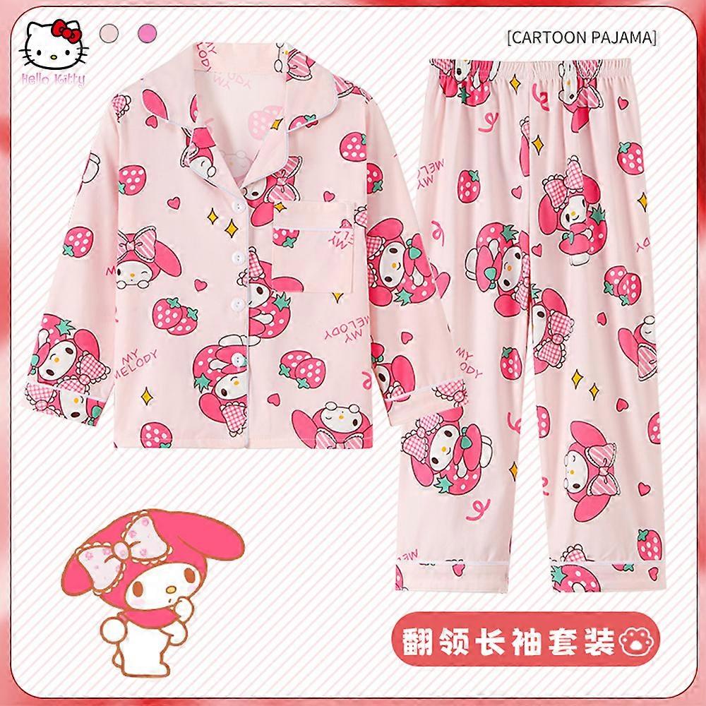 Anime Sanrios Cinnamoroll Children's Pajamas Kuromi Long Sleeve Shirts Pants Kawaii Spring Cartoon Boy Girl Homewear Sleepwear