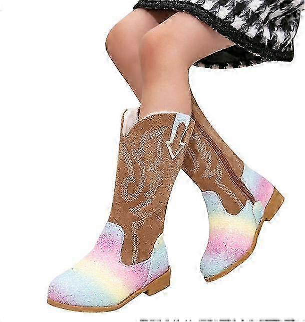 Girls Cowgirl Boots Unisex-Child Mid Calf Glitter Toddler Cowboy Boot 25-26s