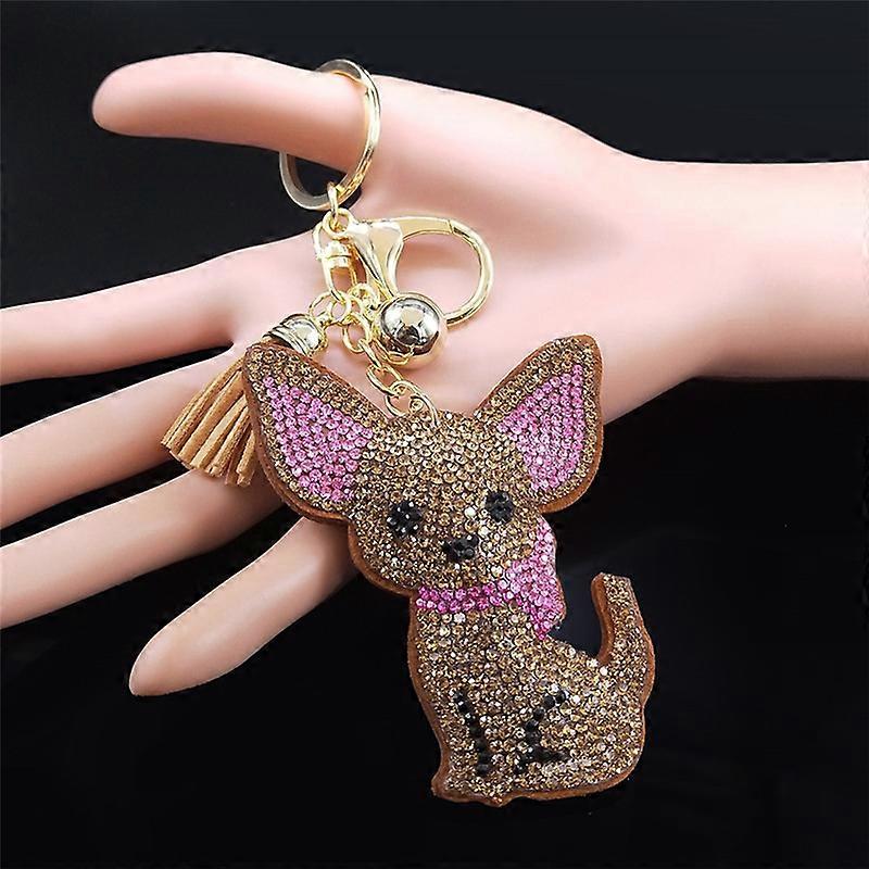 Fashion Chihuahua Dog Crystal Keychain Bag Accessories for Women Gold Color Keyring Jewelry llaveros para mujer K2502S01