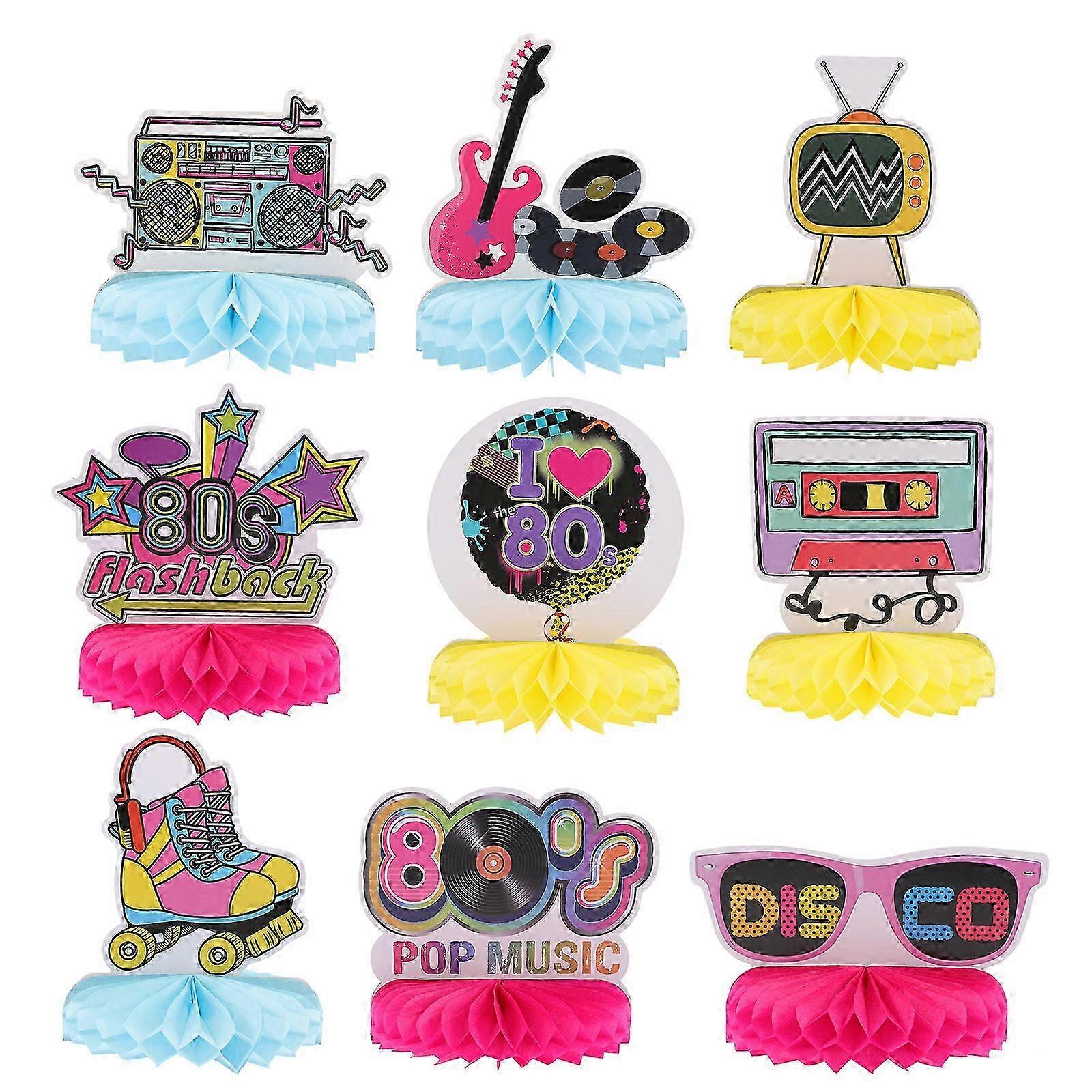 9 Pcs Desktop Decor 1990stable Topper 80 S Retro Party Supplies 1980 Party Honeycomb 80 S Retro Table Decor 25-26s
