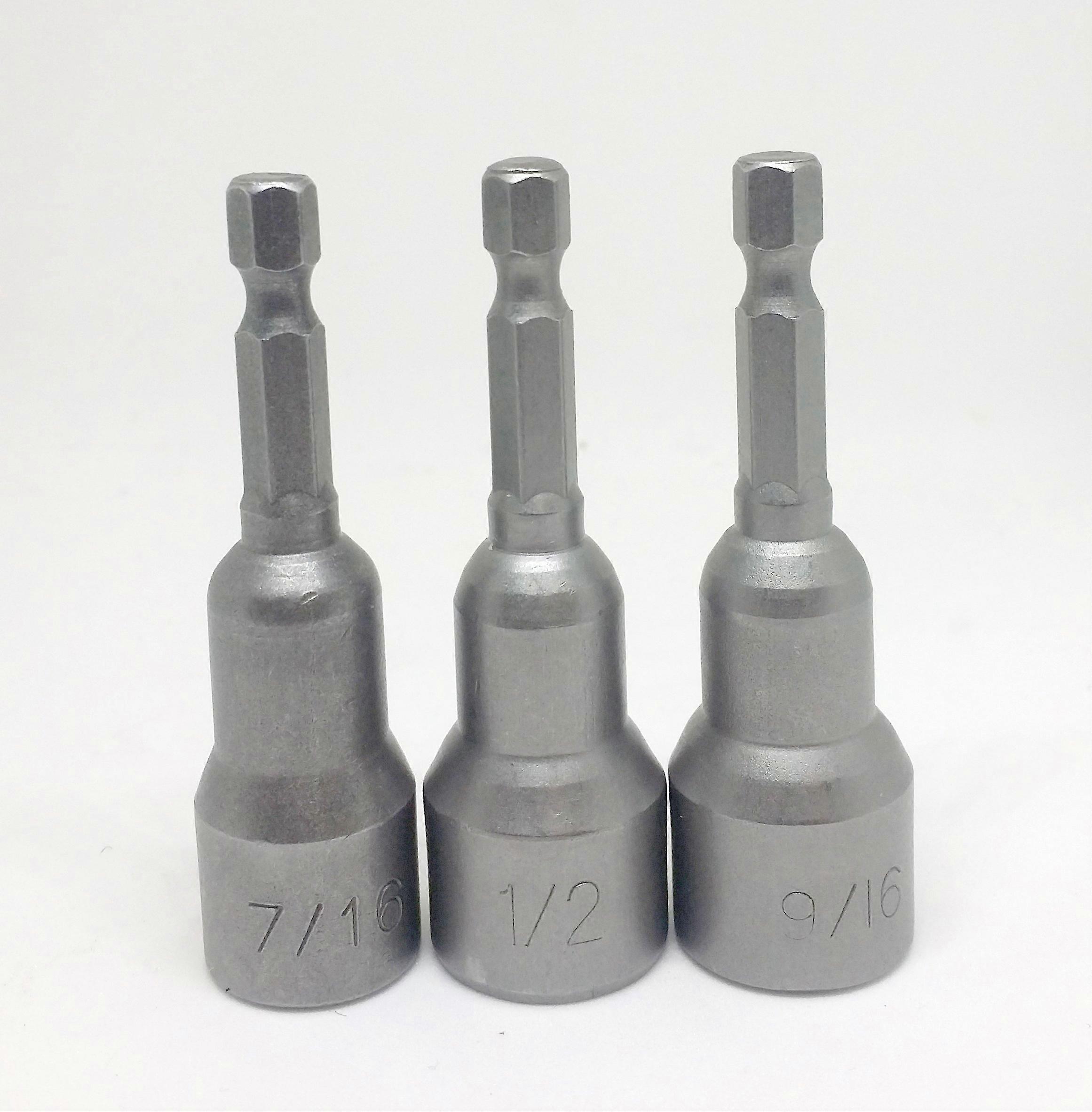 Magnetic Nut Driver Set 2.5 Inch Hex Shank CrV Steel 7/16 1/2 9/16 with Magnetic Bit Retention