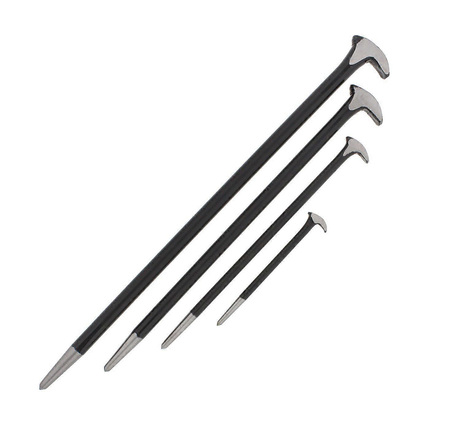 4 Piece Rolling Head Pry Bar Set Heavy Duty Steel Dual Ends Multiple Lengths
