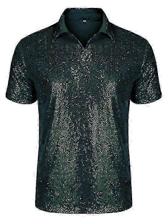 Boutique Foreign Trade Men's Casual Short Sleeve Folding Sequined Polo Shirt 10 Color Disco Nightclub Party T-shirt Top 25-26s