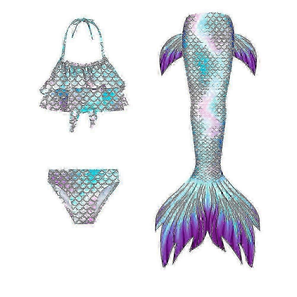 3pcs/set Girls Mermaid Tail Swimsuit Children Mermaid Ariel Cosplay Costume Fantasy Beach Bikini Set 25-26s