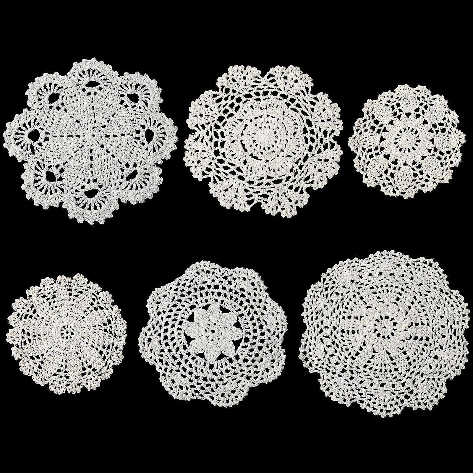 6Pcs Cotton Lace Doilies Vintage Handmade Crochet Table Mats Round Placemats for Wedding Home Decor