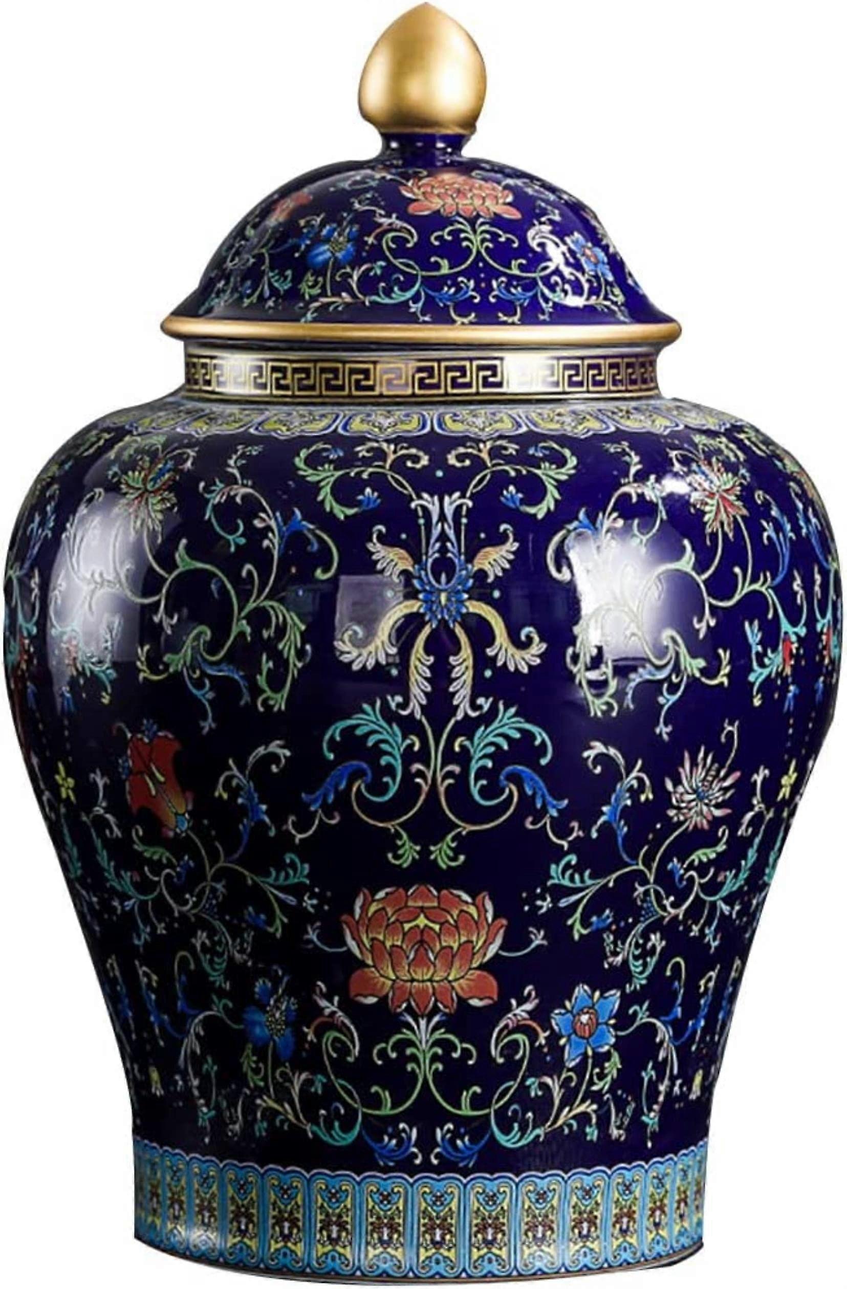 Ceramic Storage Jar with Lid, Handpainted Porcelain Ginger Jar, Chinese Floral Decorative Vase