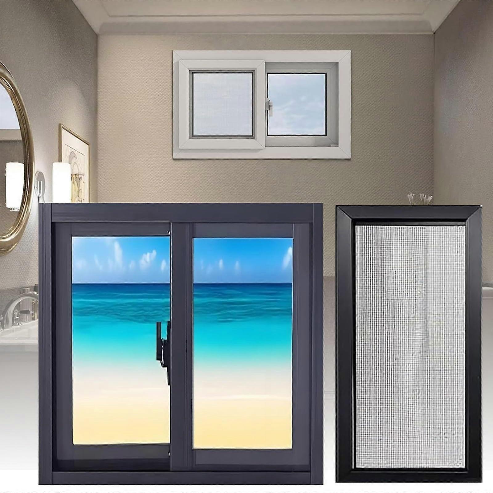 Aluminum Sliding Window with Screen and Tempered Glass for Basement or Shed, Black W28xH12in