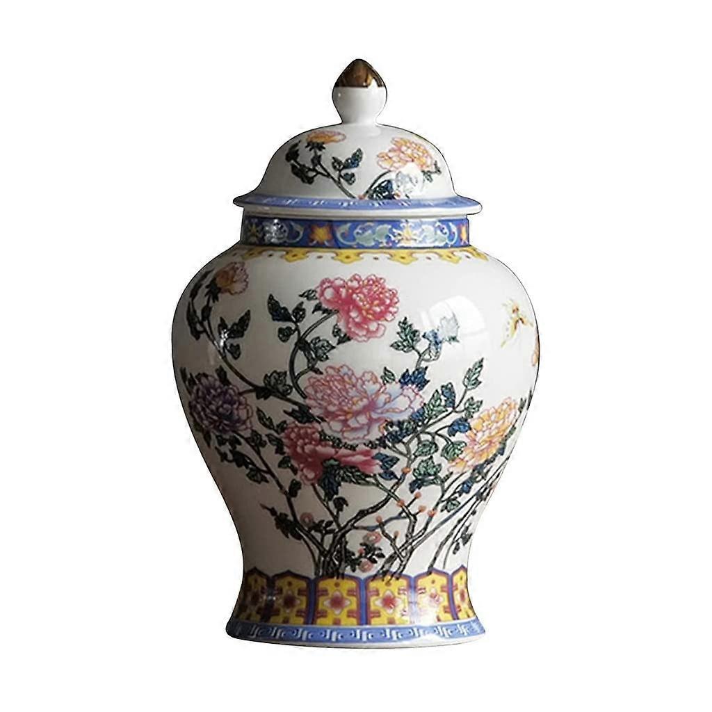 Ceramic Ginger Jar with Lid, Hand Painted Porcelain Decorative Vase, Asian Style Temple Jar