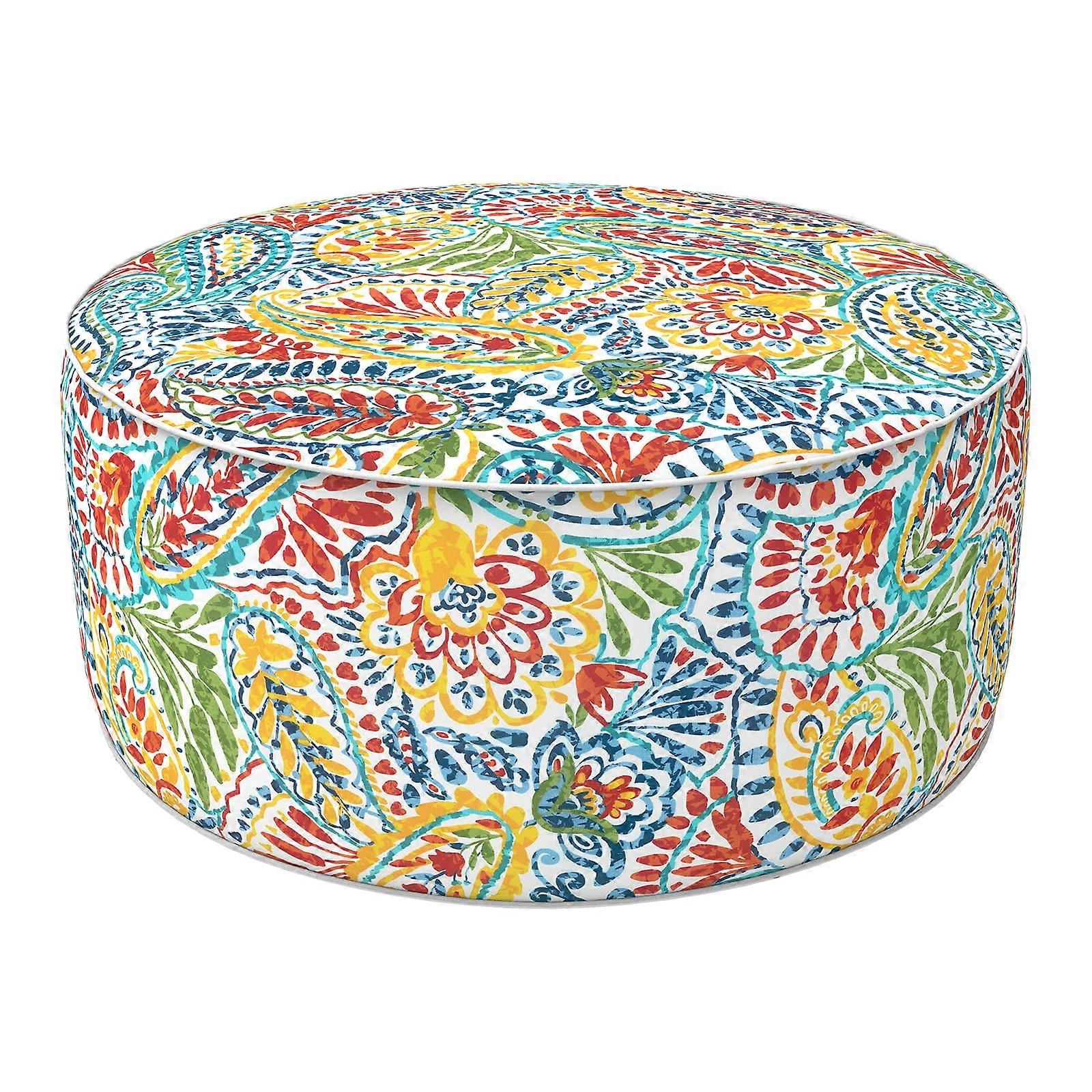 Inflatable Ottoman Large Round Outdoor Footstool AllWeather 400lbs Support Paisley Multi