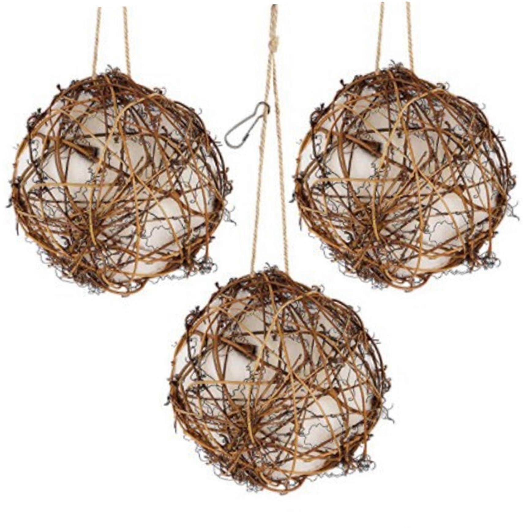 3pcs Natural Rattan Hummingbird Nest 4x4in Hanging Bird Nesting Material for Garden Patio
