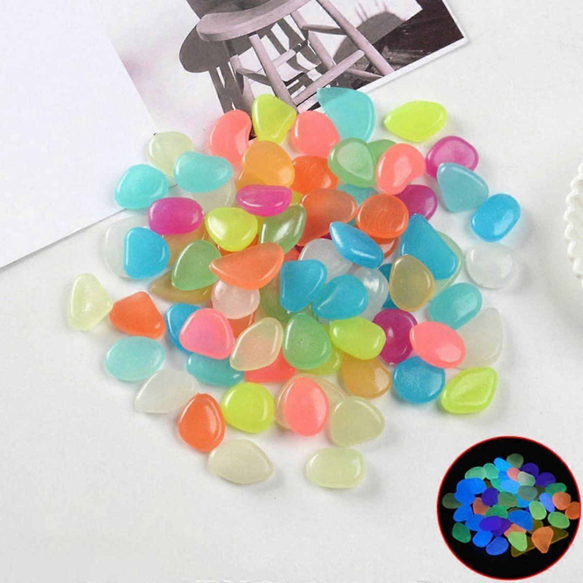 Glow in the Dark Pebbles Luminous Garden Stones for Outdoor Pathway and Aquarium, 100pcs Mix