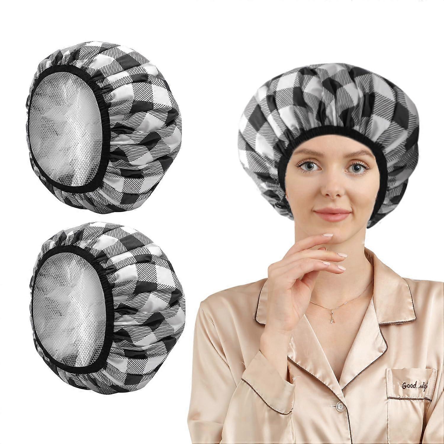2 Pack Heat Cap for Deep Conditioning and Hair Treatment, Waterproof Dual Use, Black and White Check