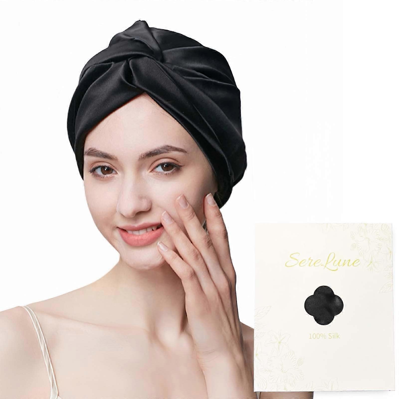 Silk Sleep Cap 100% Mulberry Silk Bonnet for Night Hair Care, Double Layer, Adjustable Black
