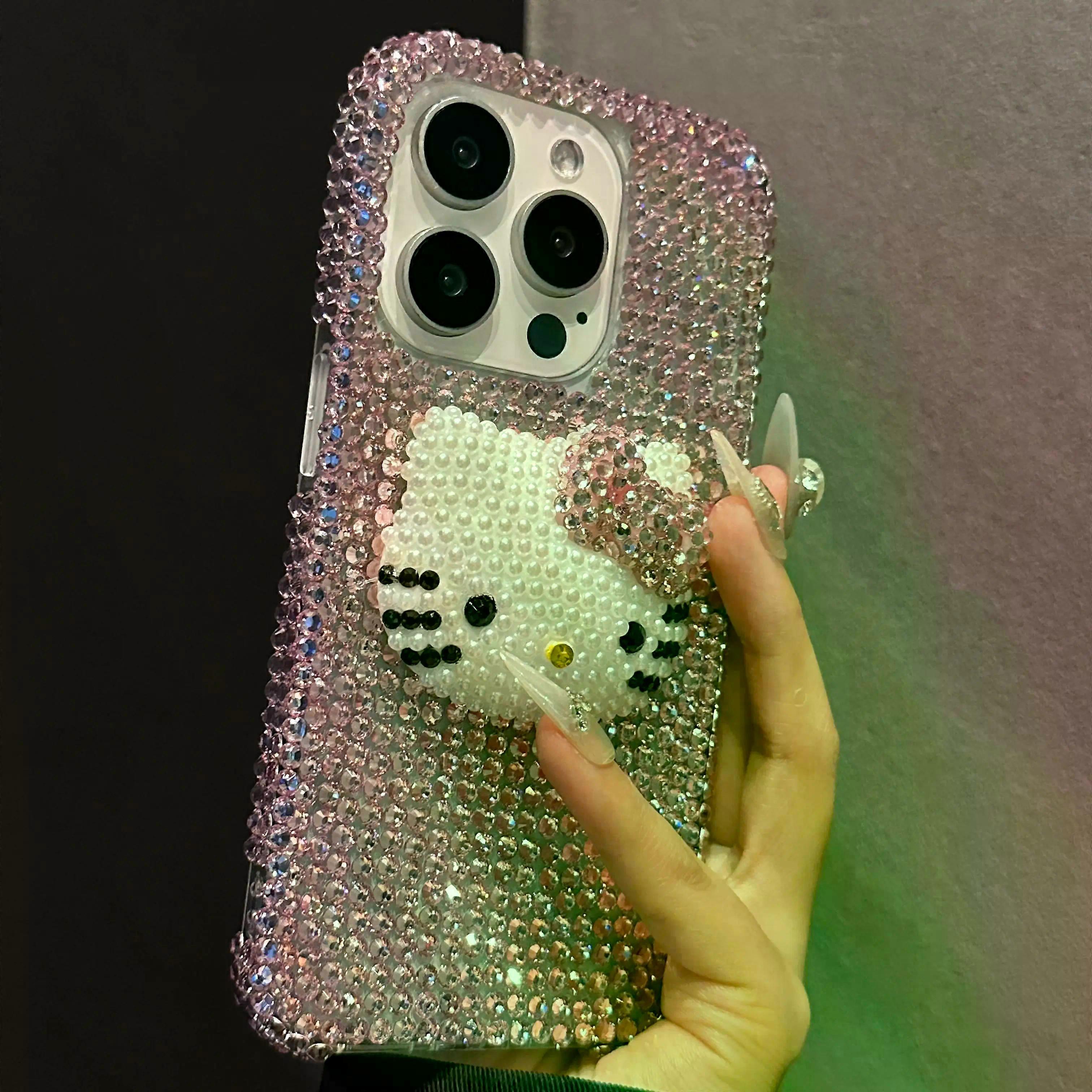 Y2K Hello Kitty Cartoon Kawaii Diy Phone Case Suitable for Iphone 15 1413 16 Promax Flash Diamond All Inclusive Transparent Case