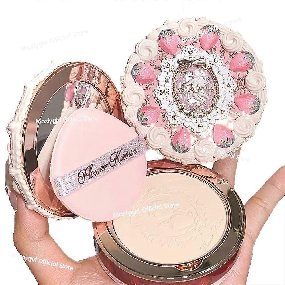 Flower knows Strawberry Cupid series Pressed Powder Moisturizing Cake Oil Matte High Coverage Lightweight Non-cakey Natural