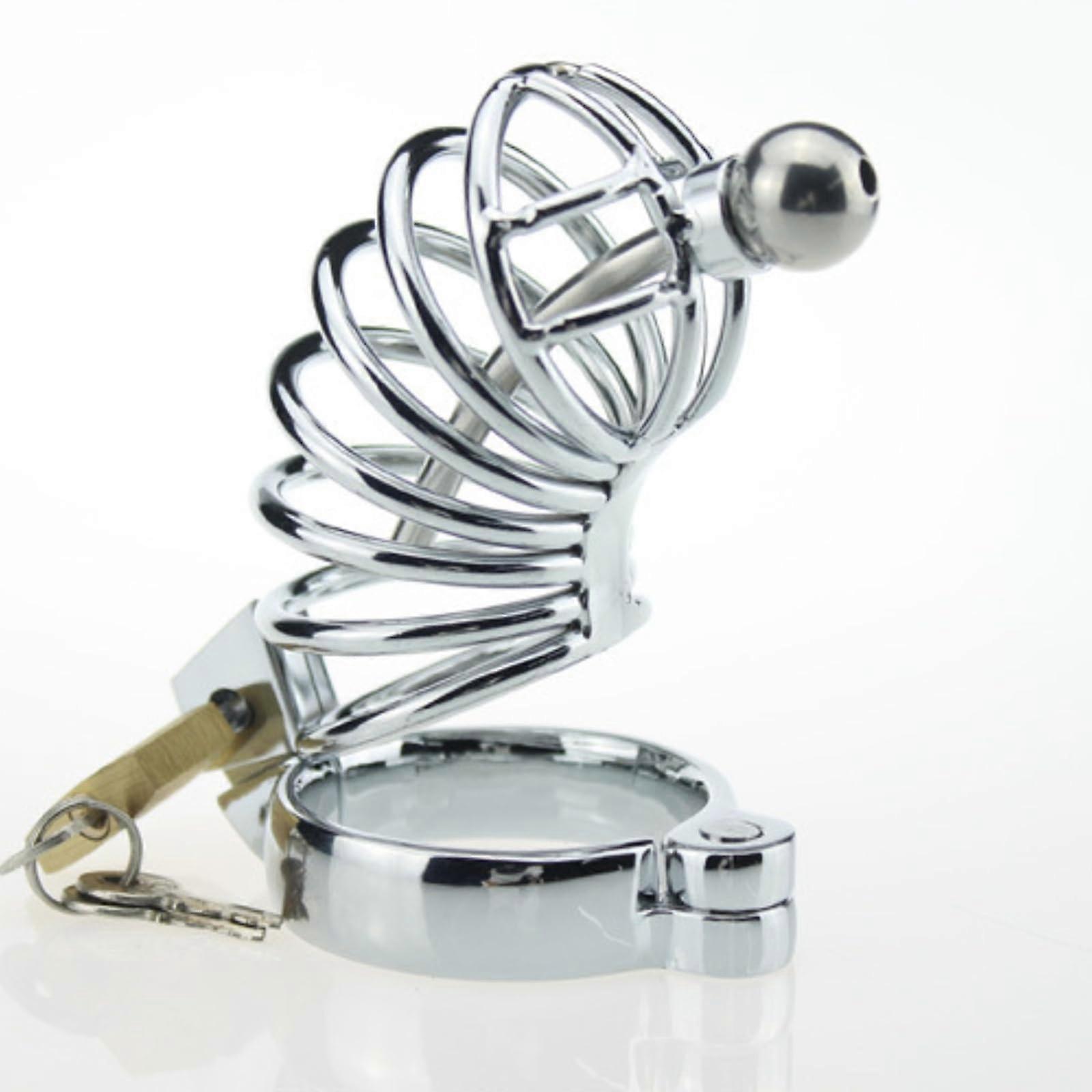 Metal Male Chastity Cage with 50mm Ring and Conduit, Durable Stainless Steel Secure Design