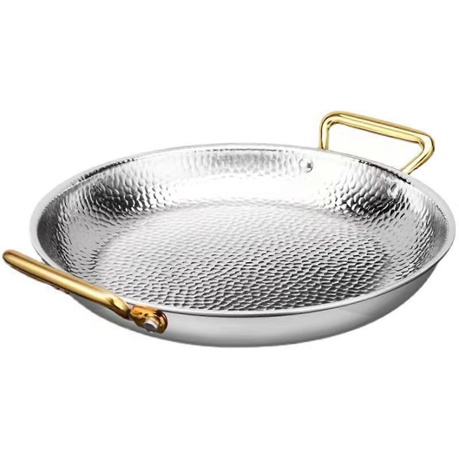 Spanish Paella Pan 28cm Silver, Uncoated Stainless Steel, Hand-Hammered, Double-Handle Frying Pan for Home or Restaurant Use 25-26s