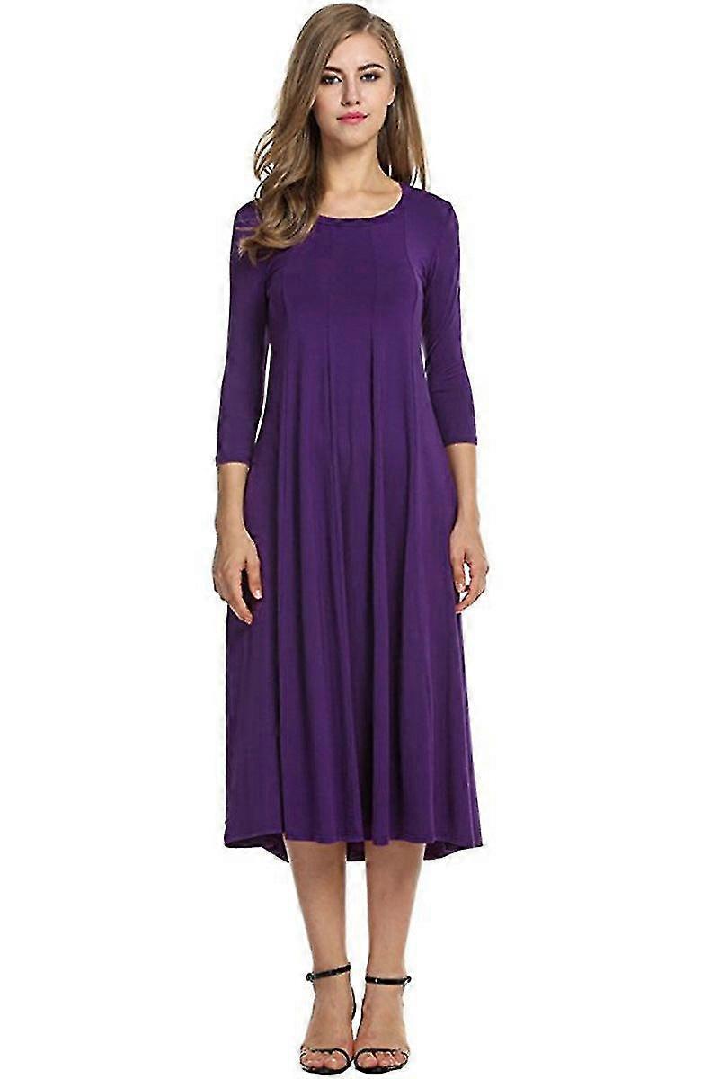 Women Summer Dress Fall Women's Clothing Round Neck Shirt With Half Sleeve Solid Color Wide Hem Dress 25-26s