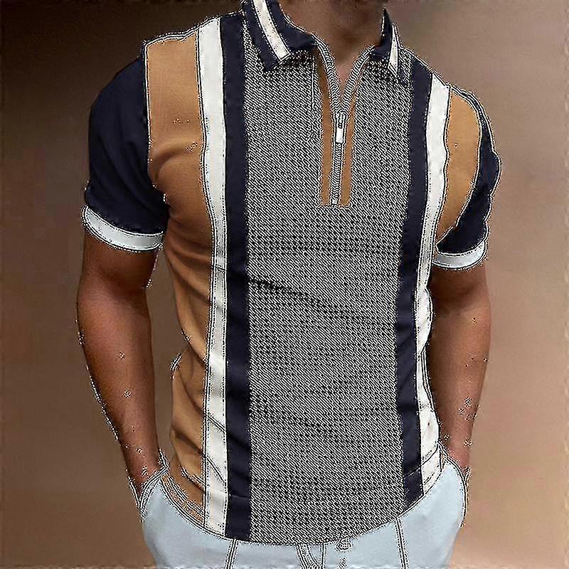 2023men Zip Up Athletic T-shirt Classic Fit Golf Summer Tops Short Sleeve Beach Polo Shirt Blouse 25-26s