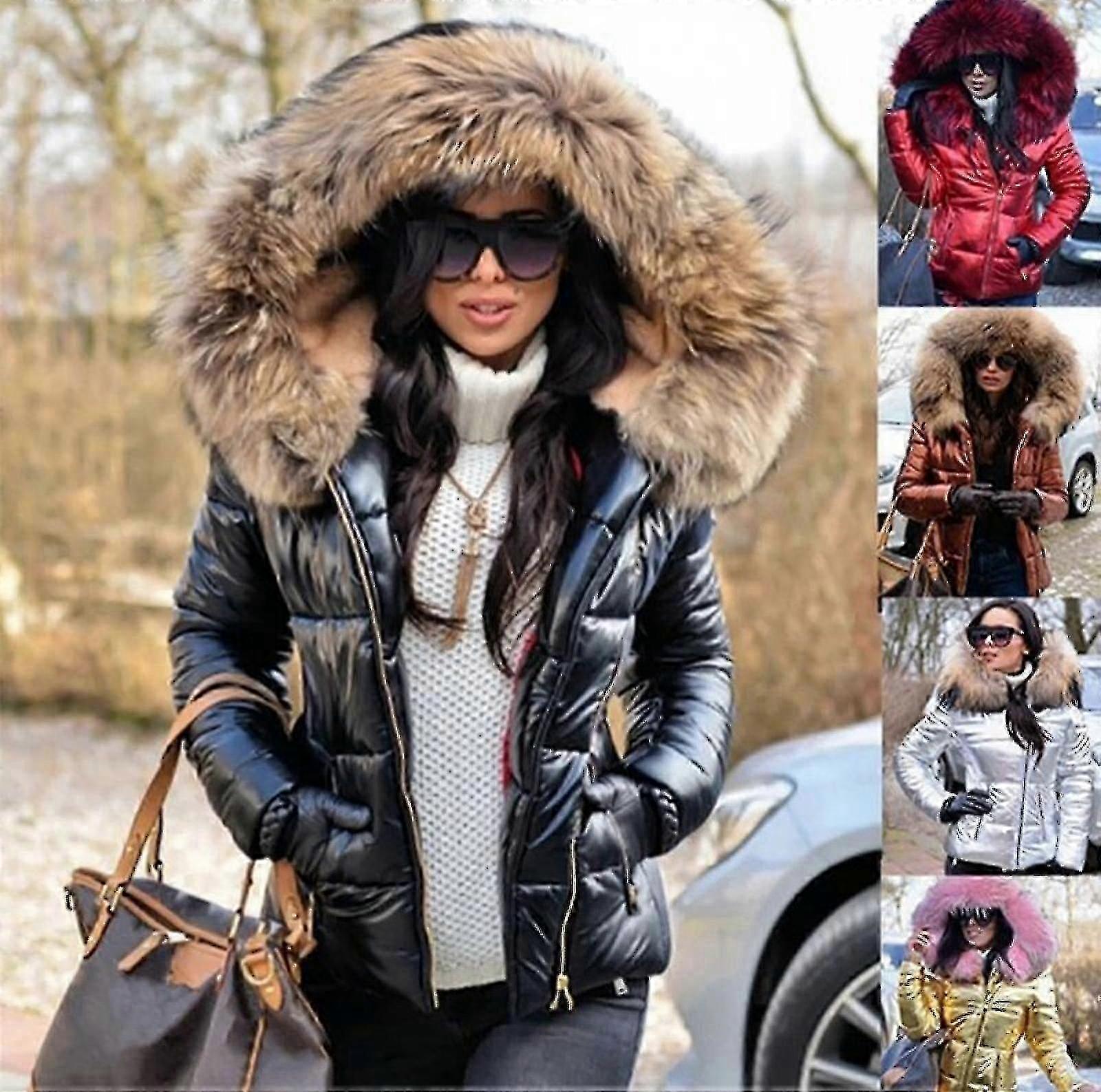 Women Winter Faux Fur Hood Puffer Down Coat Lady Thick Quilted Padded Jacket Zip Parka 25-26s