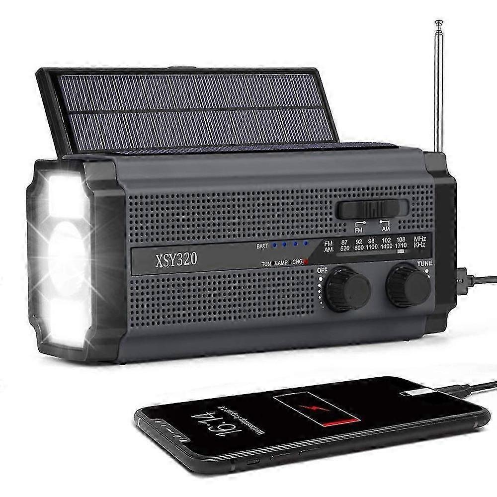 25-26 XSY320 Outdoor Solar Hand Crank FM/AM/WB Radio Flashlight 5000mAh Power Bank-Grey+Black