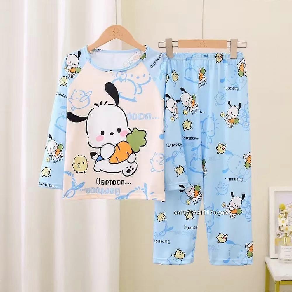Autumn Kuromi Pompom Purins Children's Pajamas Set Cinnamoroll Cute Anime Cartoon Kids Long Sleeves Pijama Boy Girls Sleepwear