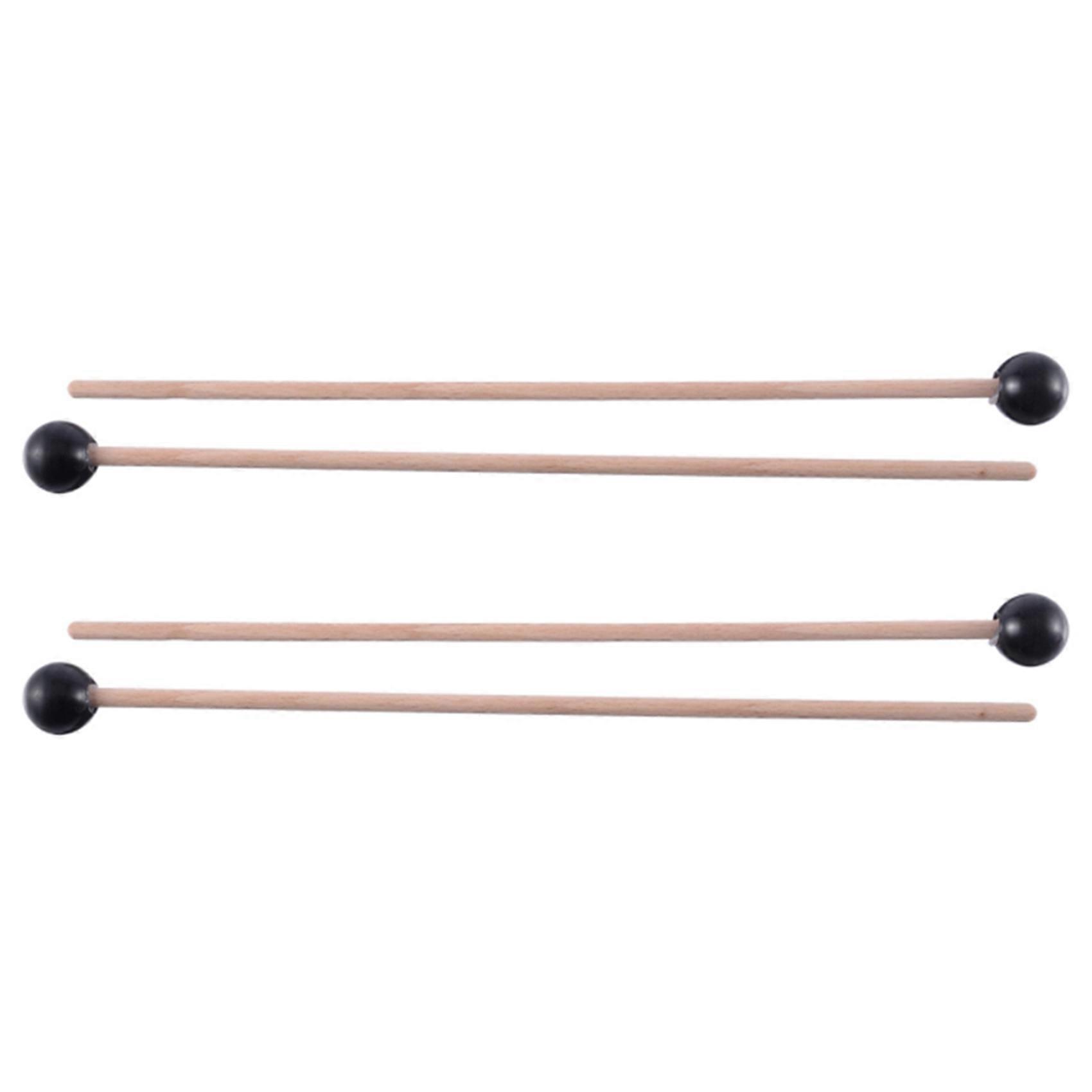 4Pcs Soft Rubber Head Sticks Wood Handle Bell Mallets for Glockenspiel Xylophone Bell Music Instruments Parts Black