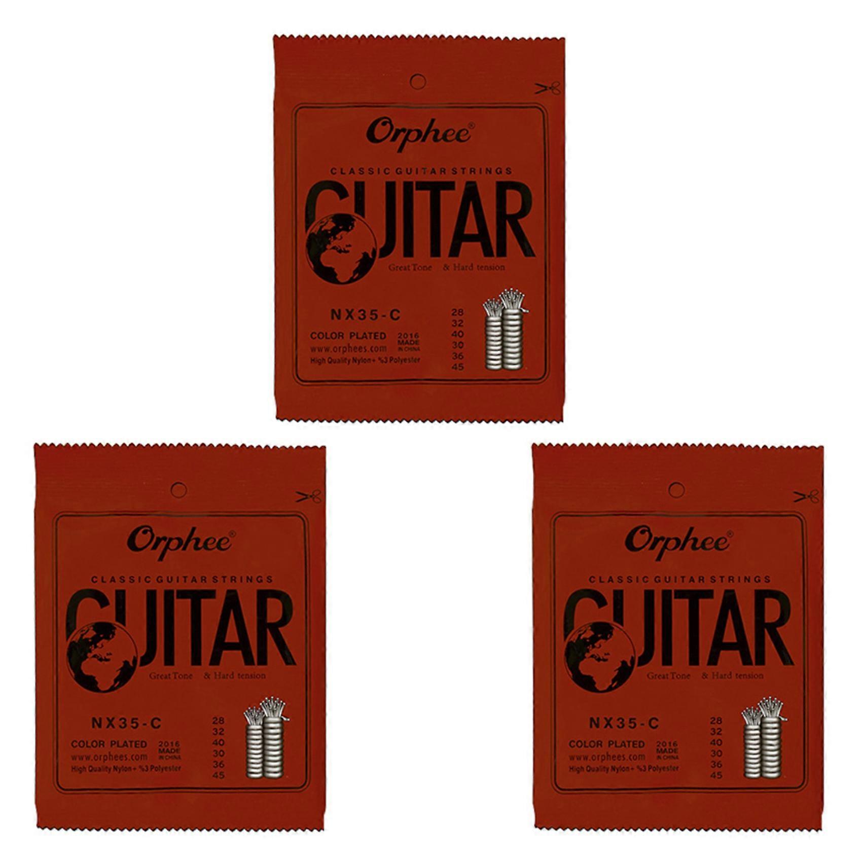 Orphee 18Pcs NX35-C Full Set Black Nylon Classical Guitar Strings Hard Tension 0.028 - 0.045 Inch