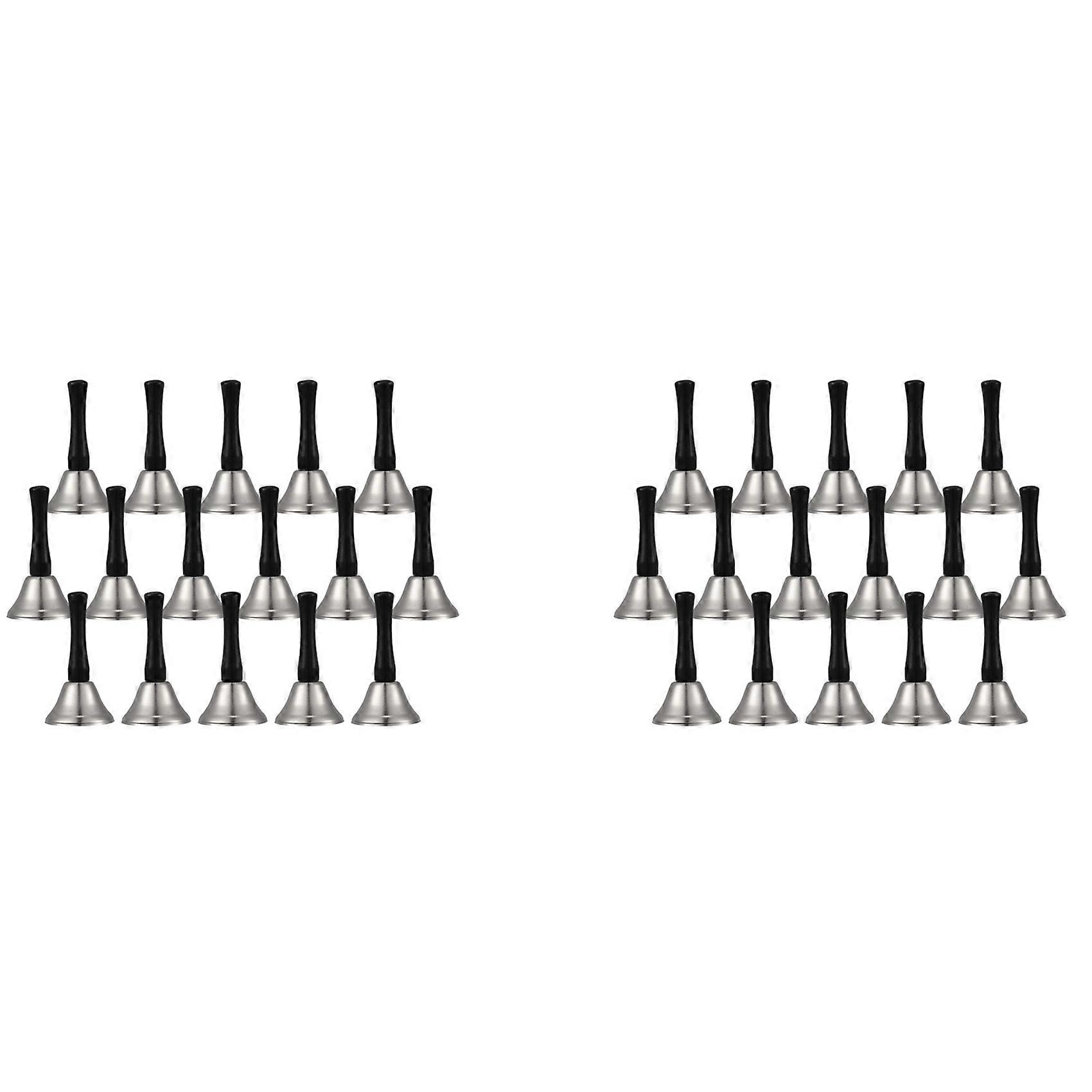 48x Hand Bells Silver Steel Service Handbells Black Wooden Handle Diatonic Metal Bells Musical Percussion (Nickel White)