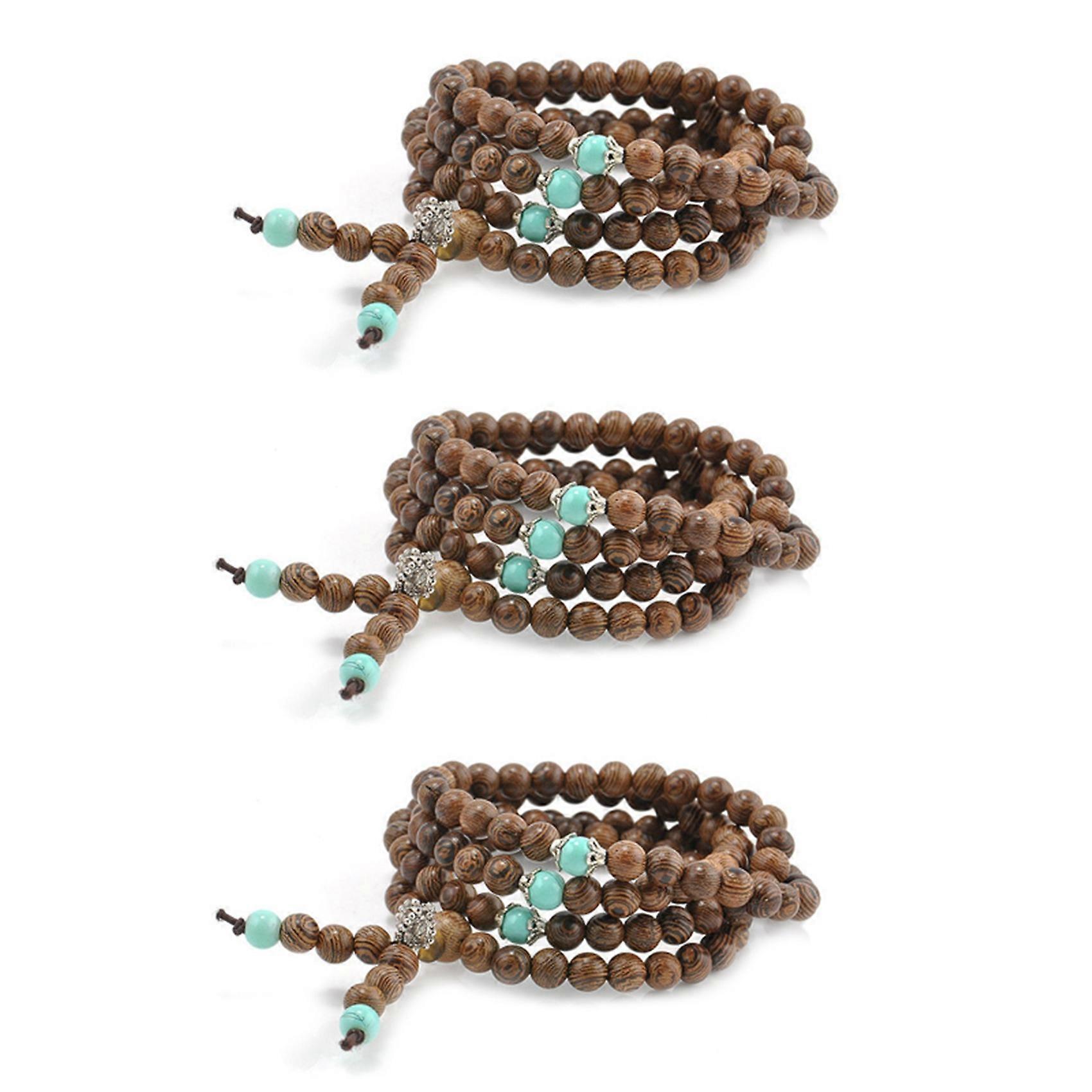 3X 108 Sandalwood Buddhist Buddha Meditation Prayer Bead Mala Bracelet Necklace
