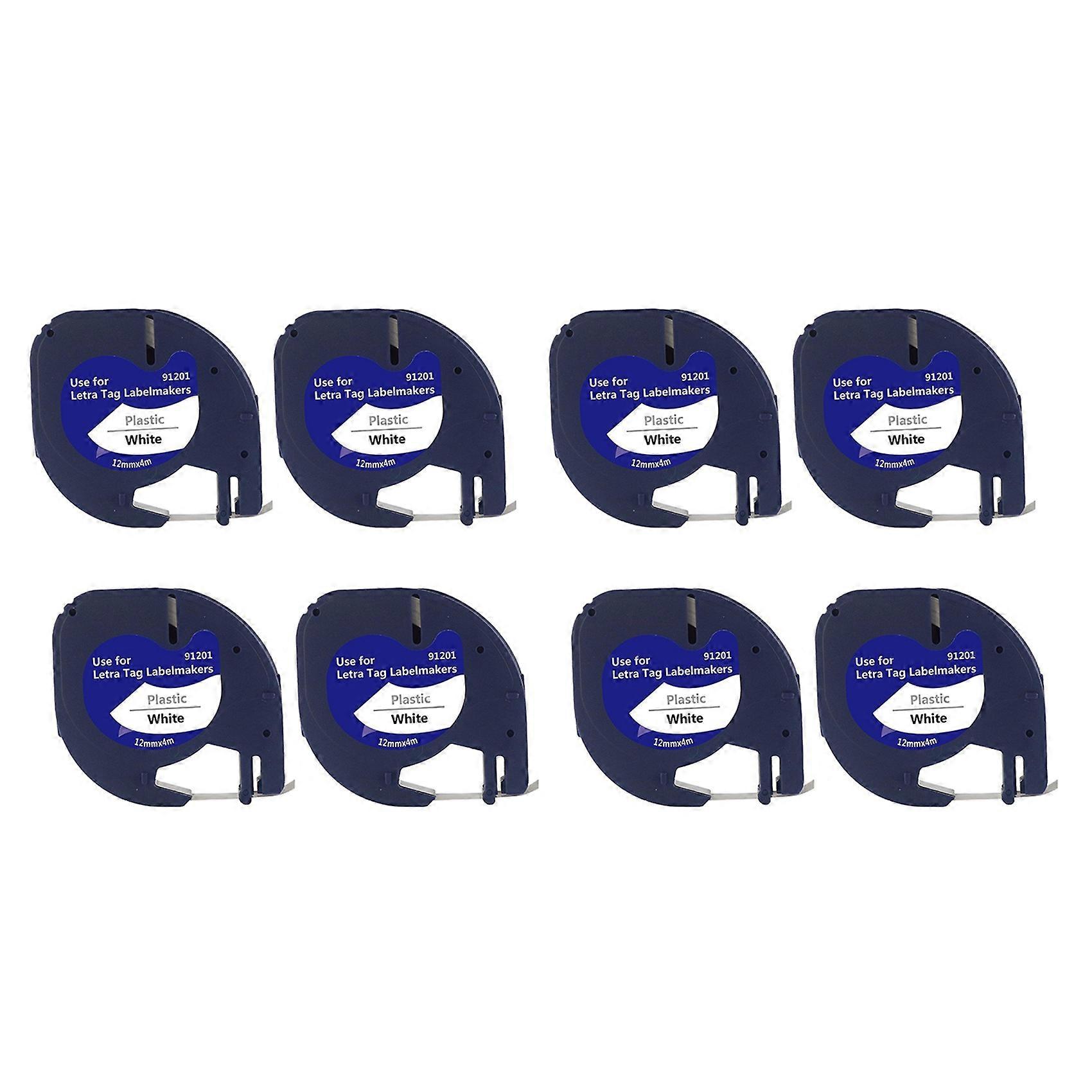 8 Pack Plastic Label Tapes for DYMO LetraTag 91201 Black on White (12mm x 4M) for LT-100H, LT-100T, LT-2000, QX50