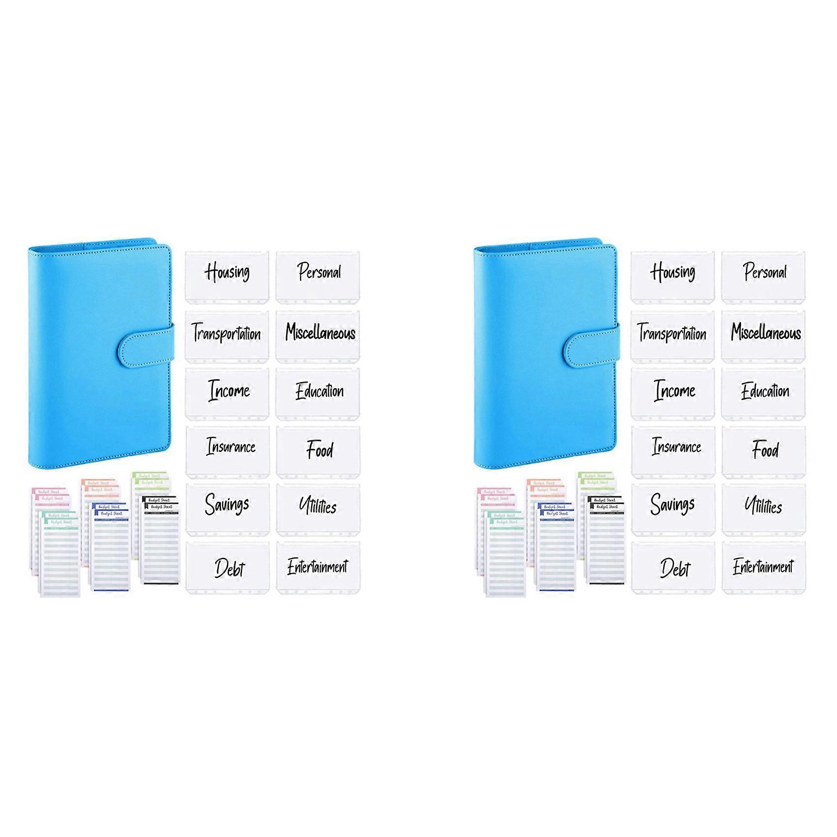 50Pcs A6 PU Leather Budget Binder Set, Binder Cover Personal Planner Binder for Money Saving Cash Envelopes System Blue