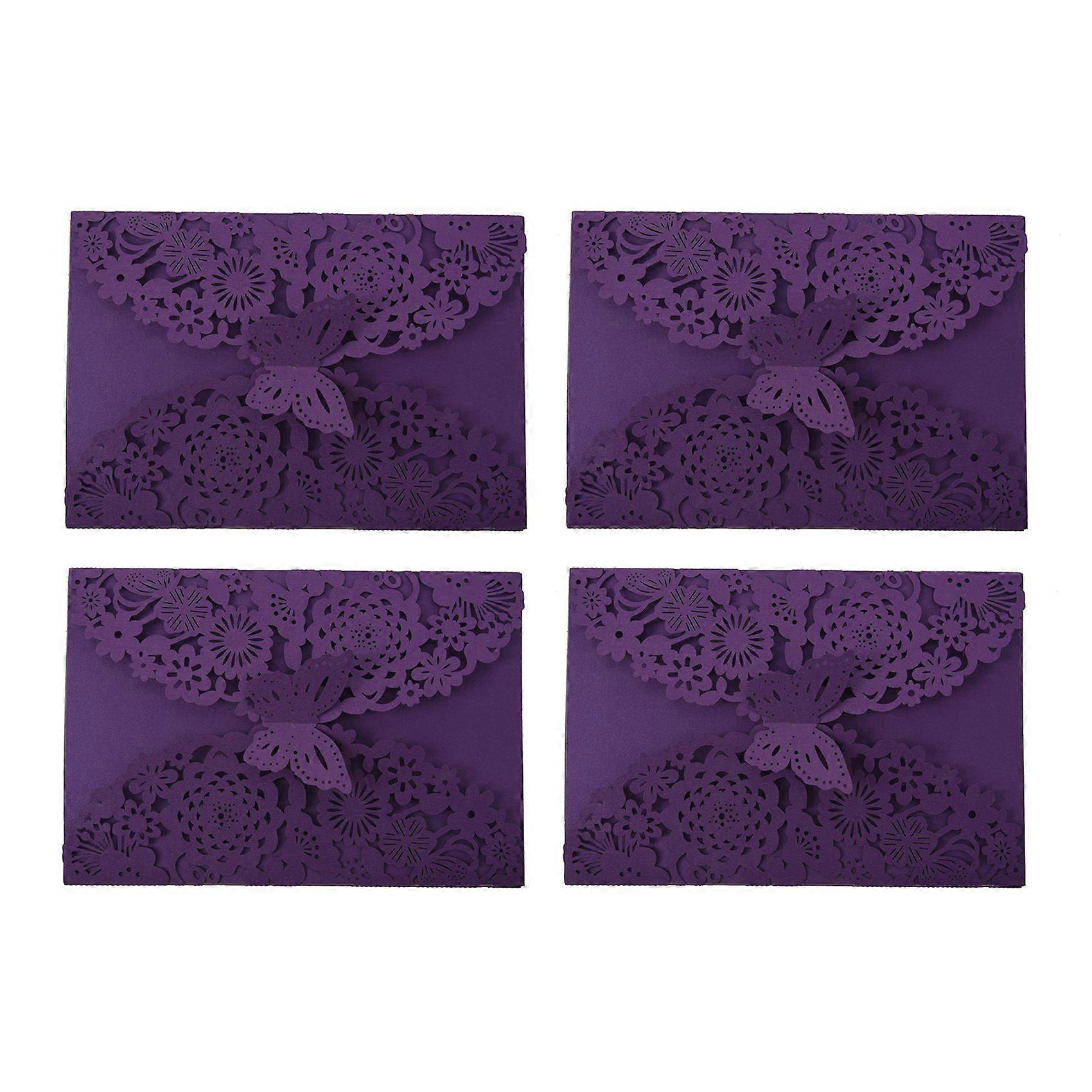 40Pcs/Set Delicate Carved Butterflies Romantic Wedding Party Invitation Card Envelope Invitations for Wedding:Purple