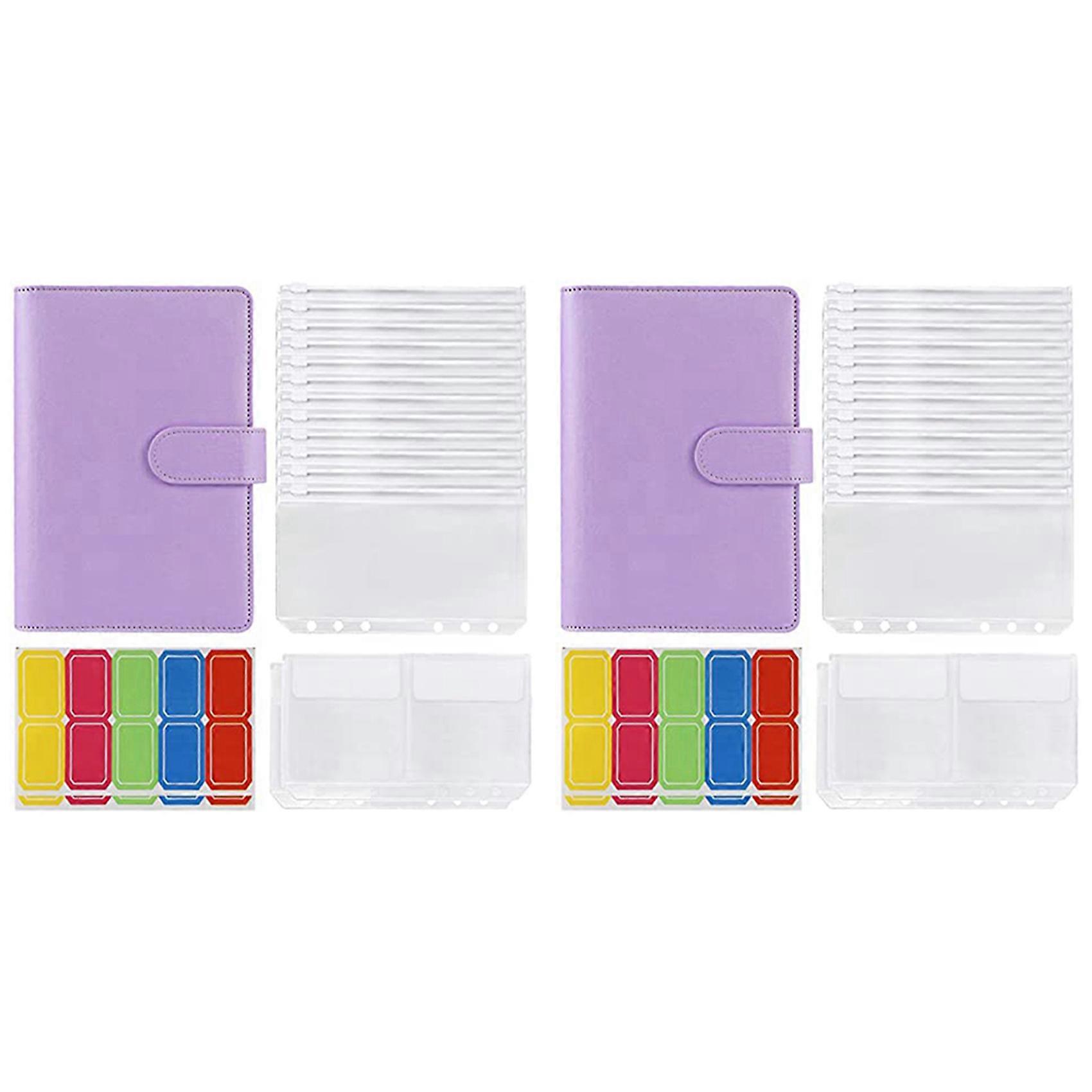 2X 14 Binder Bags A6 with Leather Binder Cover, 6 Rings Budget Binder with Cash Envelope, Money Saving Binder (Purple)