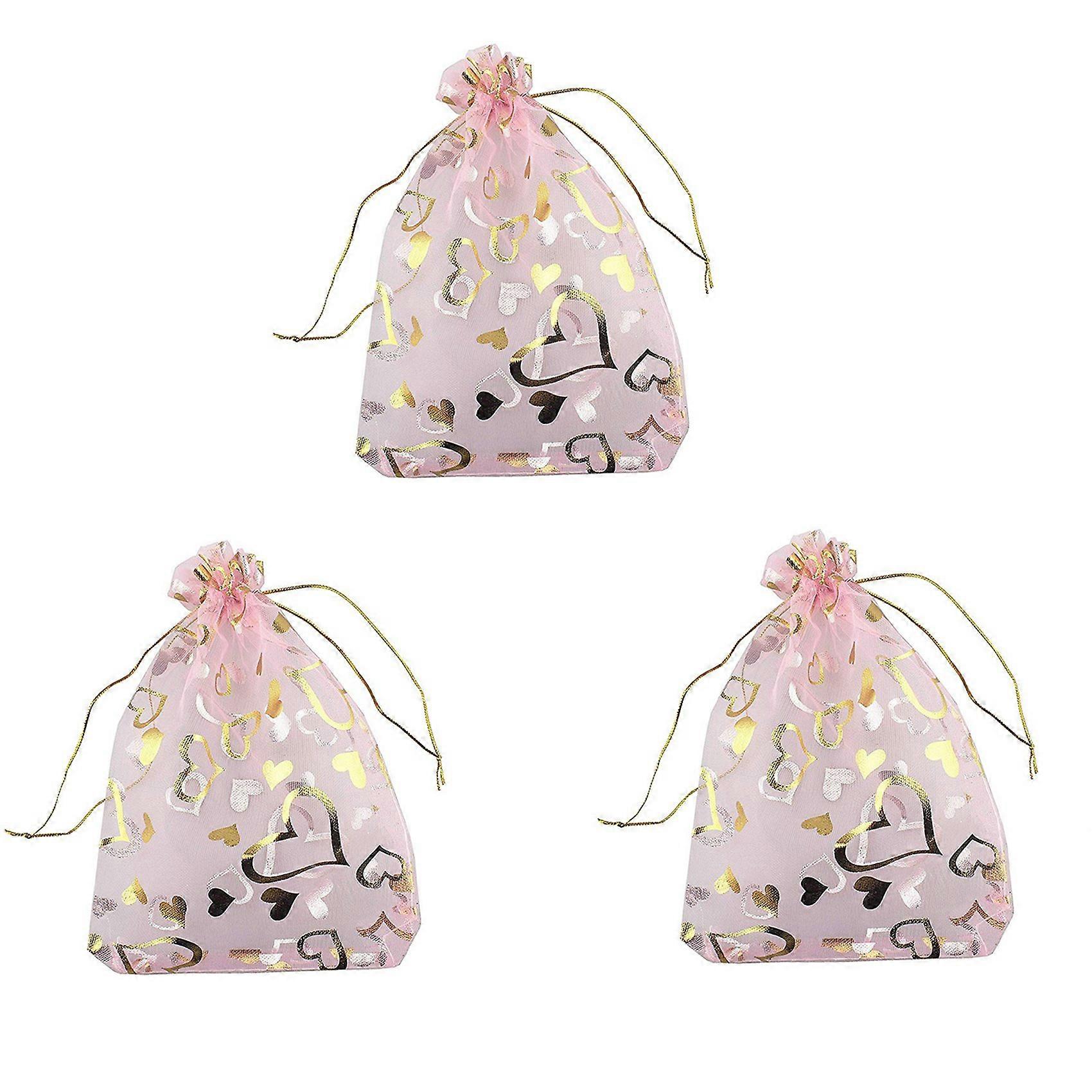 300 PCS 9X12cm Heart Printed Pink Organza Bags Jewelry Pouch Bags Drawstring Pouches Wedding Favors Candy Gift Bags