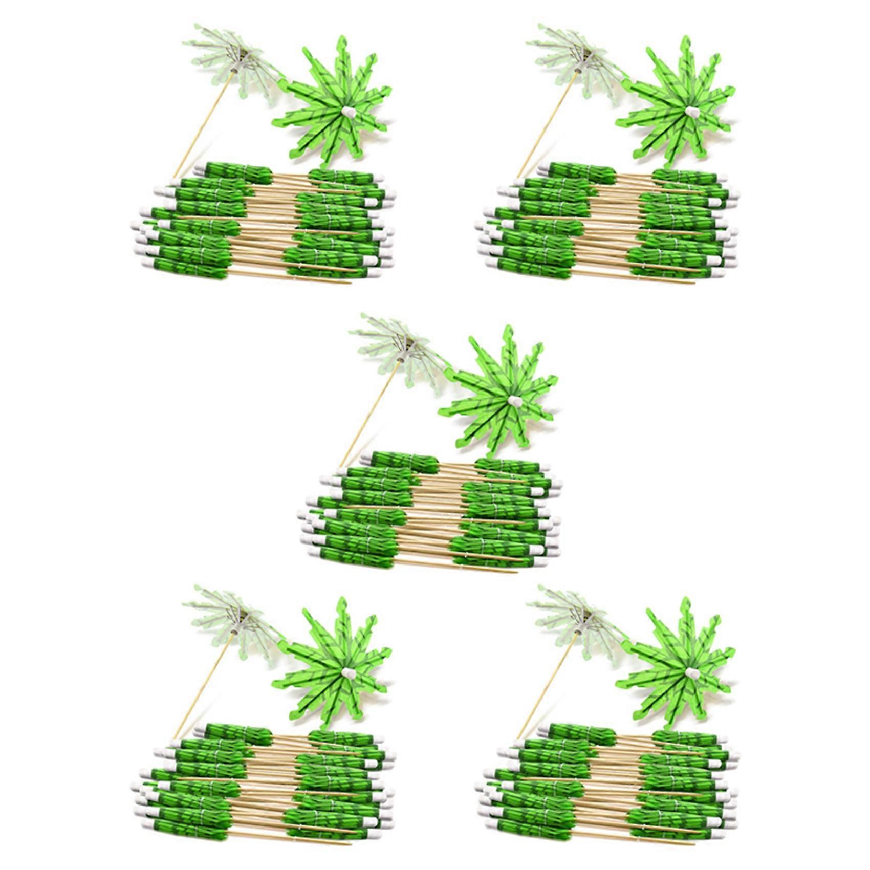 200X Green Coconut Tree Toothpicks Paper Umbrellas Toothpicks Handmade Cocktail Parasol Sticks for Cocktail Decorations