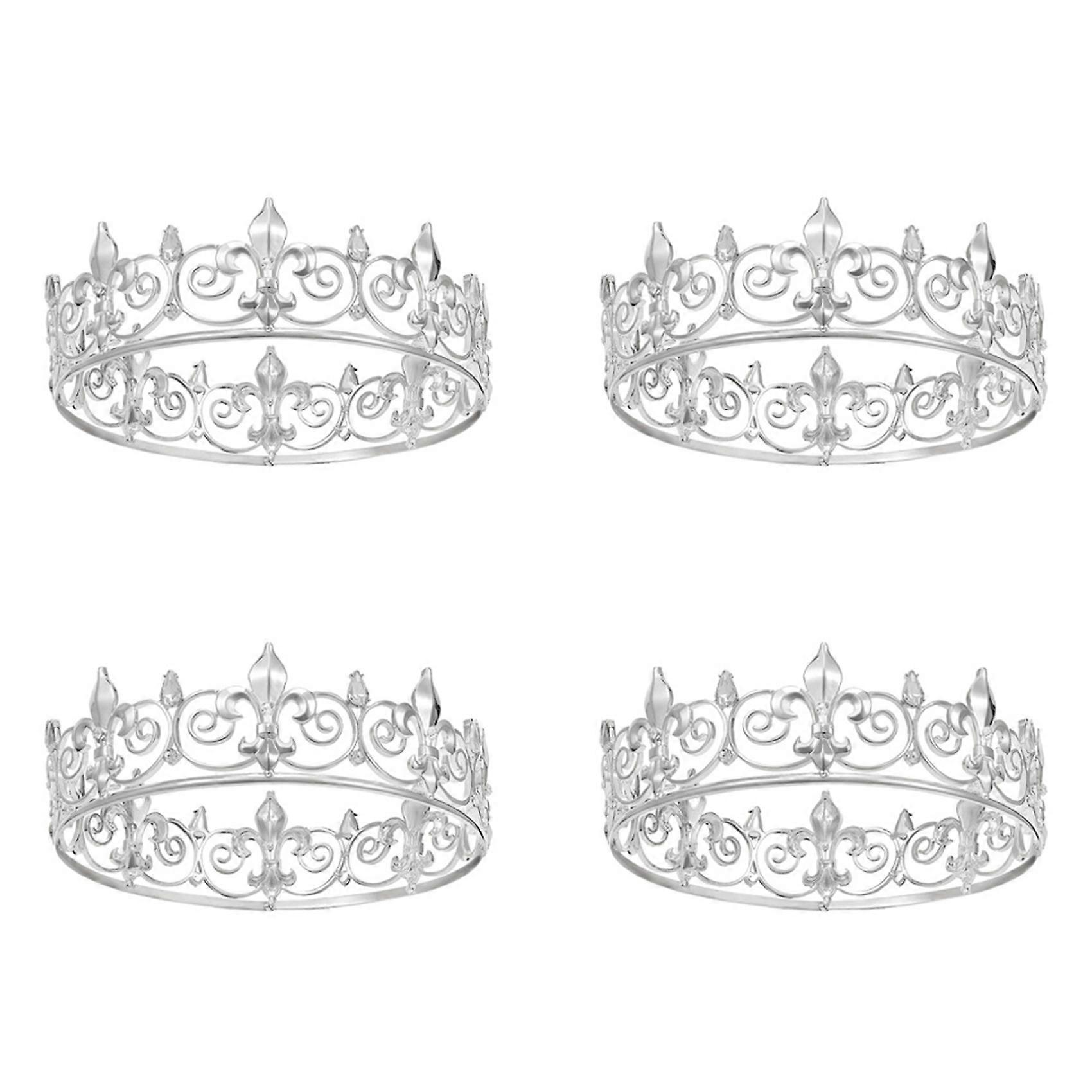 4X Royal King Crown for Men - Metal Prince Crowns and Tiaras, Full Round Birthday Party Hats(Silver)