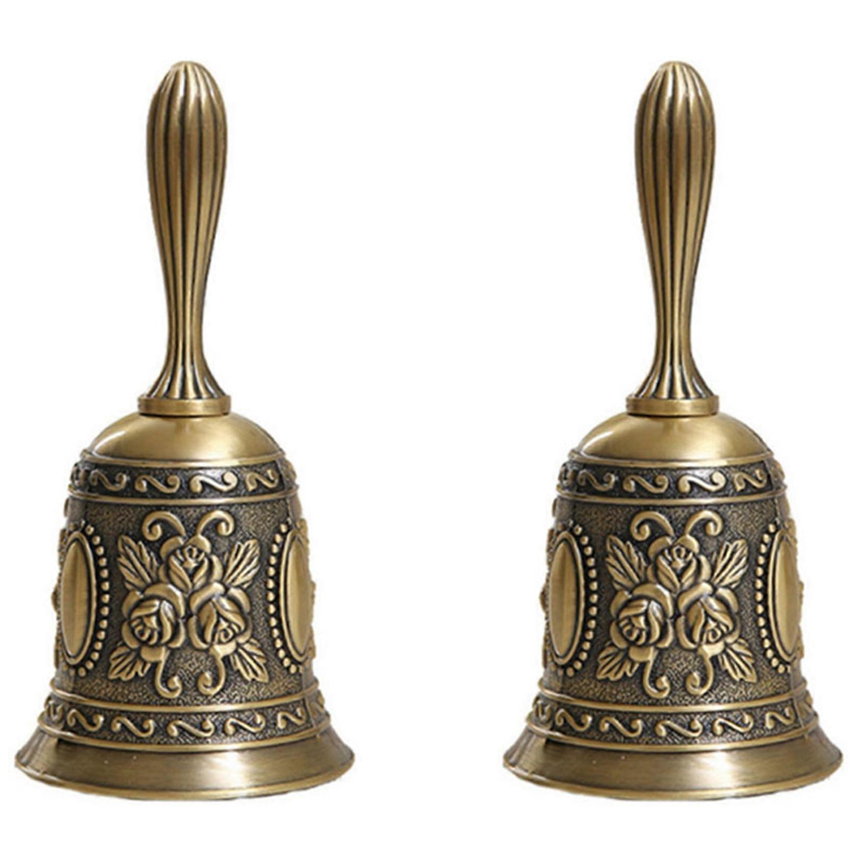 2X Antique Hand Bell Call Bell Multi-Purpose Bells for Wedding Bells Temple Bell School Bell for Toddlers Bronze