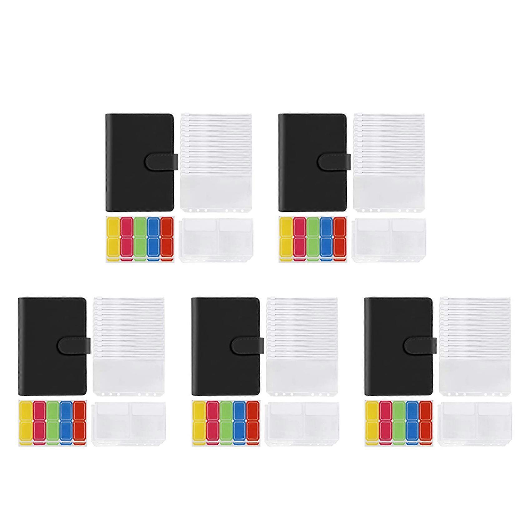 5X 14 Binder Bags A6 with Leather Binder Cover, 6 Rings Budget Binder with Cash Envelope, Money Saving Binder (Black)