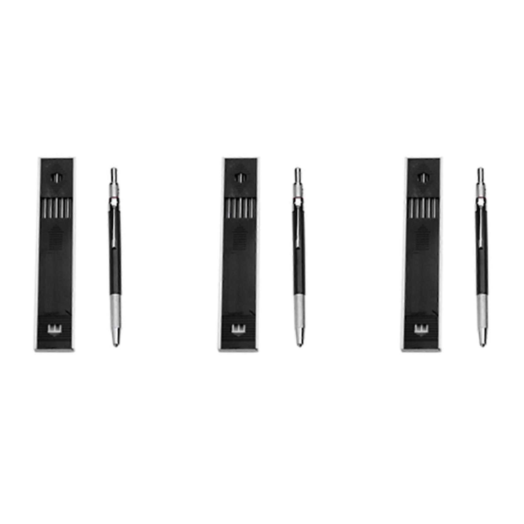 3Pcs 2.0mm Mechanical Pencil Lead Pencil for Draft Drawing Carpenter Crafting Art Sketching with 36 Pcs Refill - Black