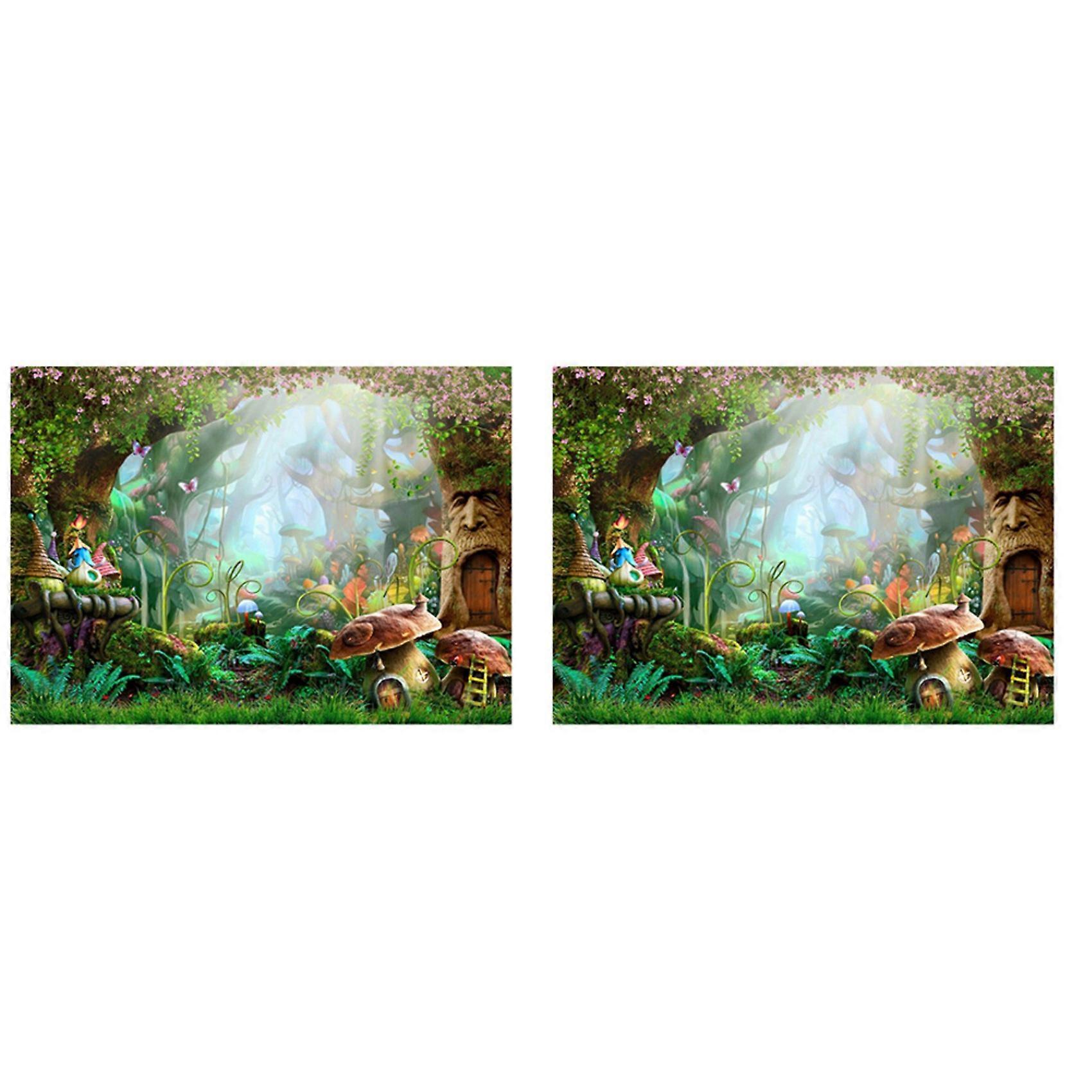 2pcs 7X5Ft Washable Fabric Photography Background Fairytale Dreamlike Nature Forest Life Background Photographical