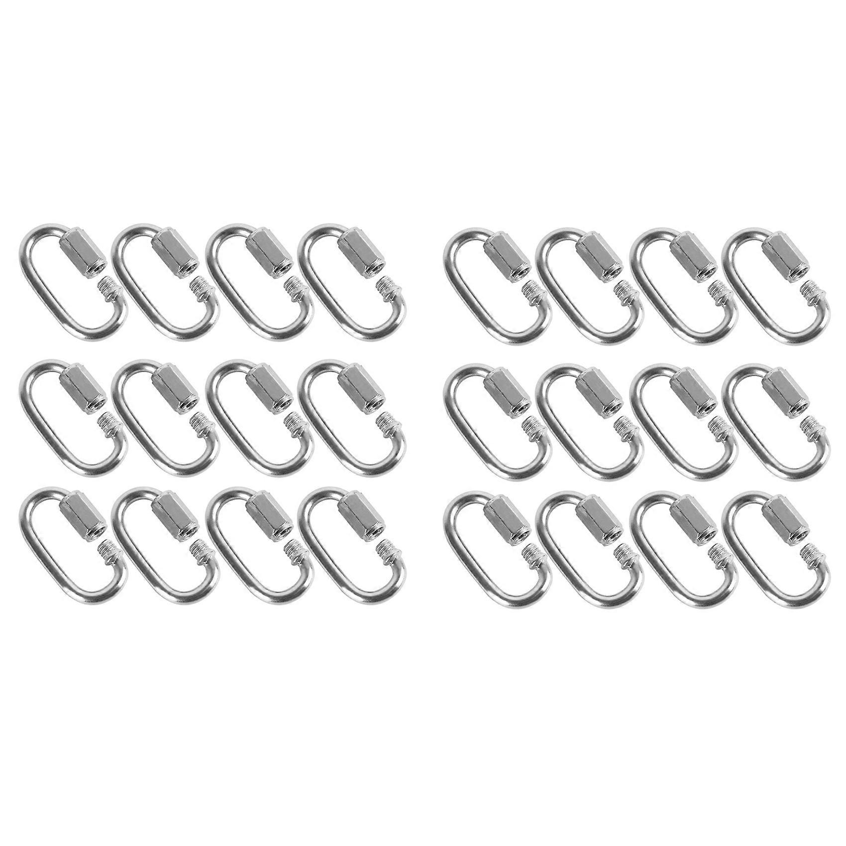 24 Pcs Quick Link M4 4MM Stainless Steel Chain Connector,Heavy Duty D Shape Locking Looks for Carabiner, Max.Load 500 Lb
